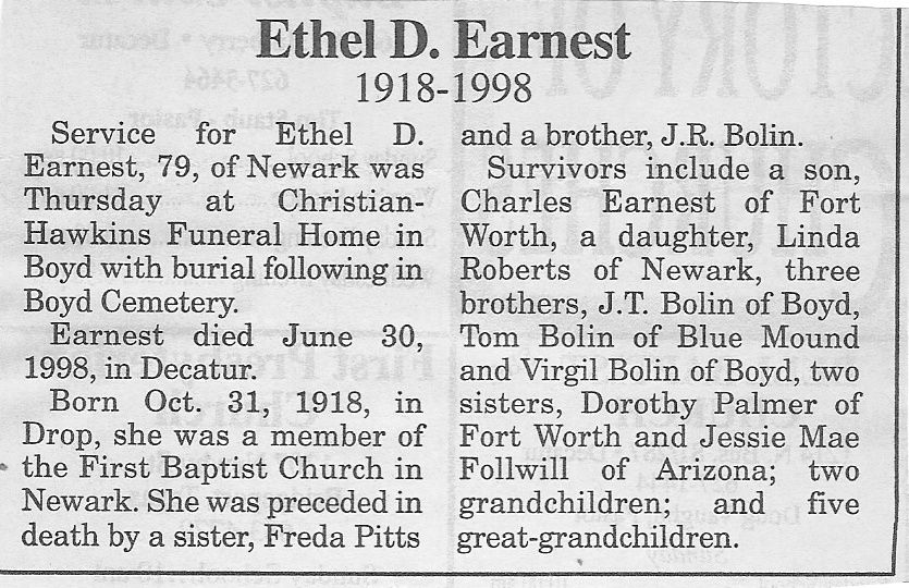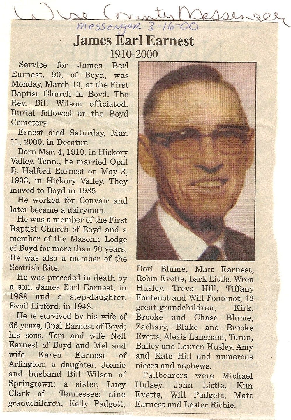 Earnest, Earl C. 1982 -- Newspaper Clipping