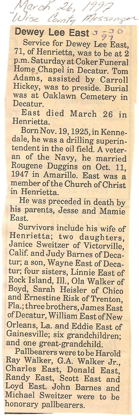 Easley, Marion Charles 1989 -- Newspaper Clipping