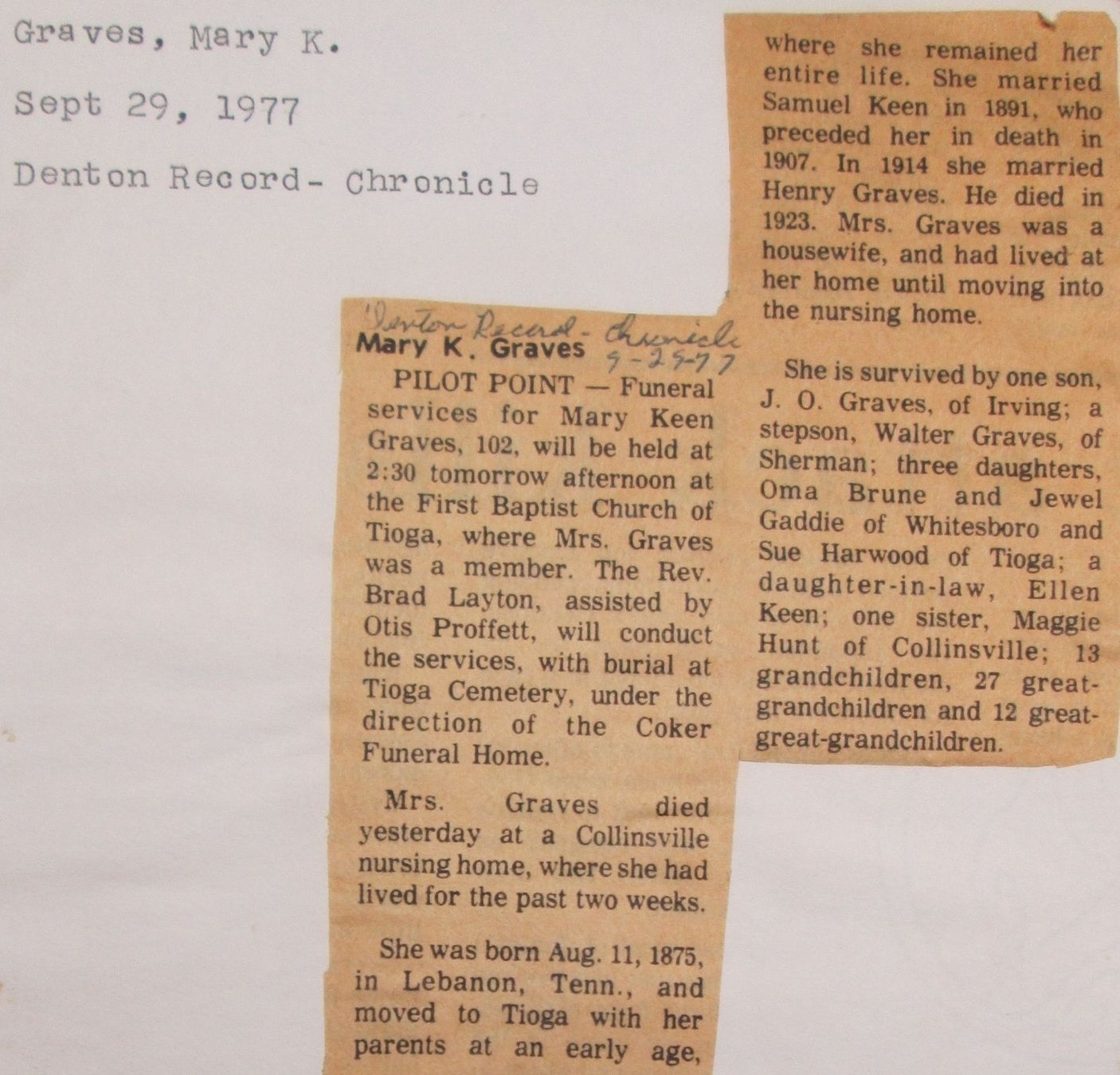 Gulley, Mary Luis Lewis (nee Whorton) - 1934 -- Various Older Newspapers