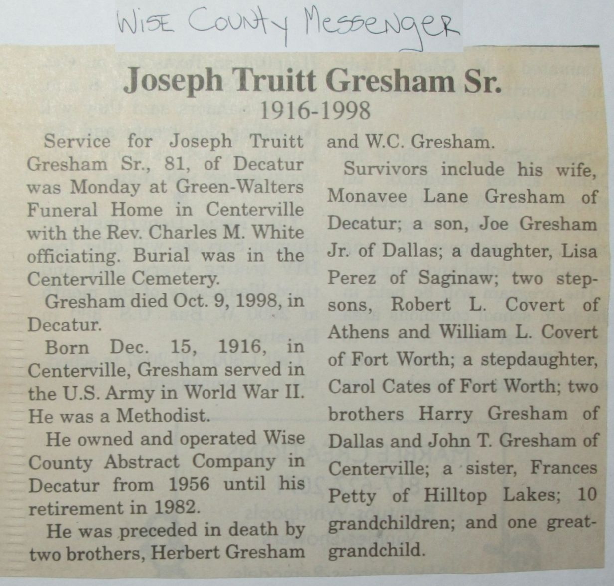 Groves, John Wilson - 1929 -- Old Decatur News & Wise Co Messenger