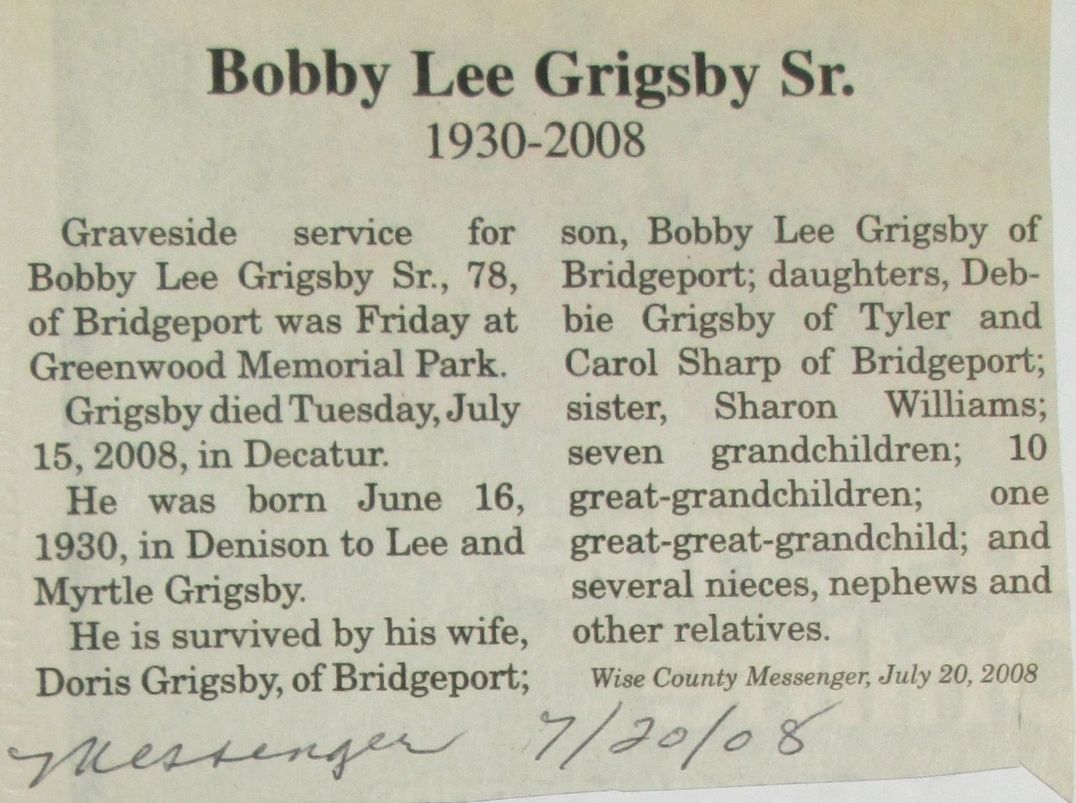 Grundy, Robert Andrew 'Bob' - 2020 -- 2020 Wise County Messenger