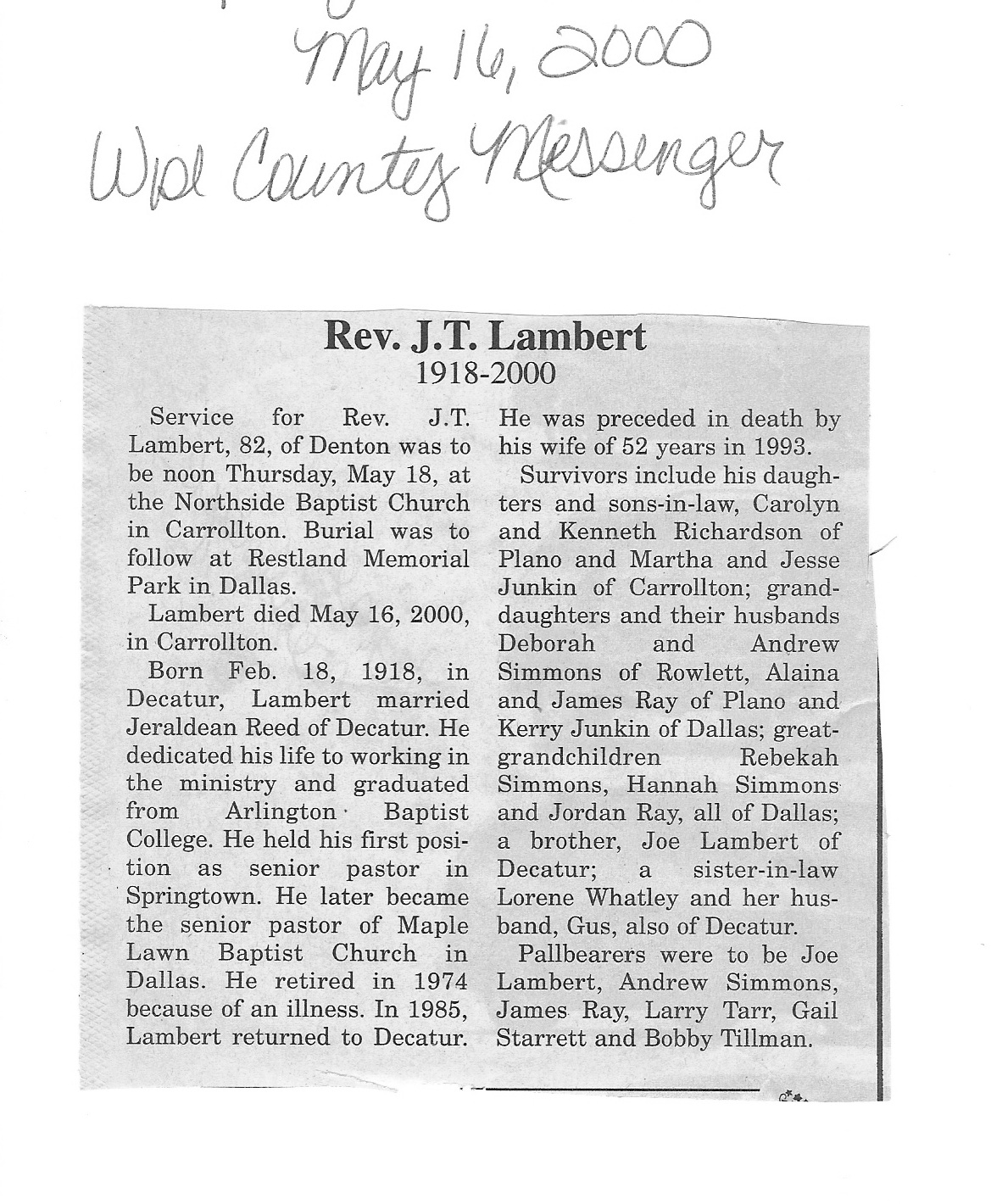 Lambert, Dick Creal 1977 -- Newspaper Clipping