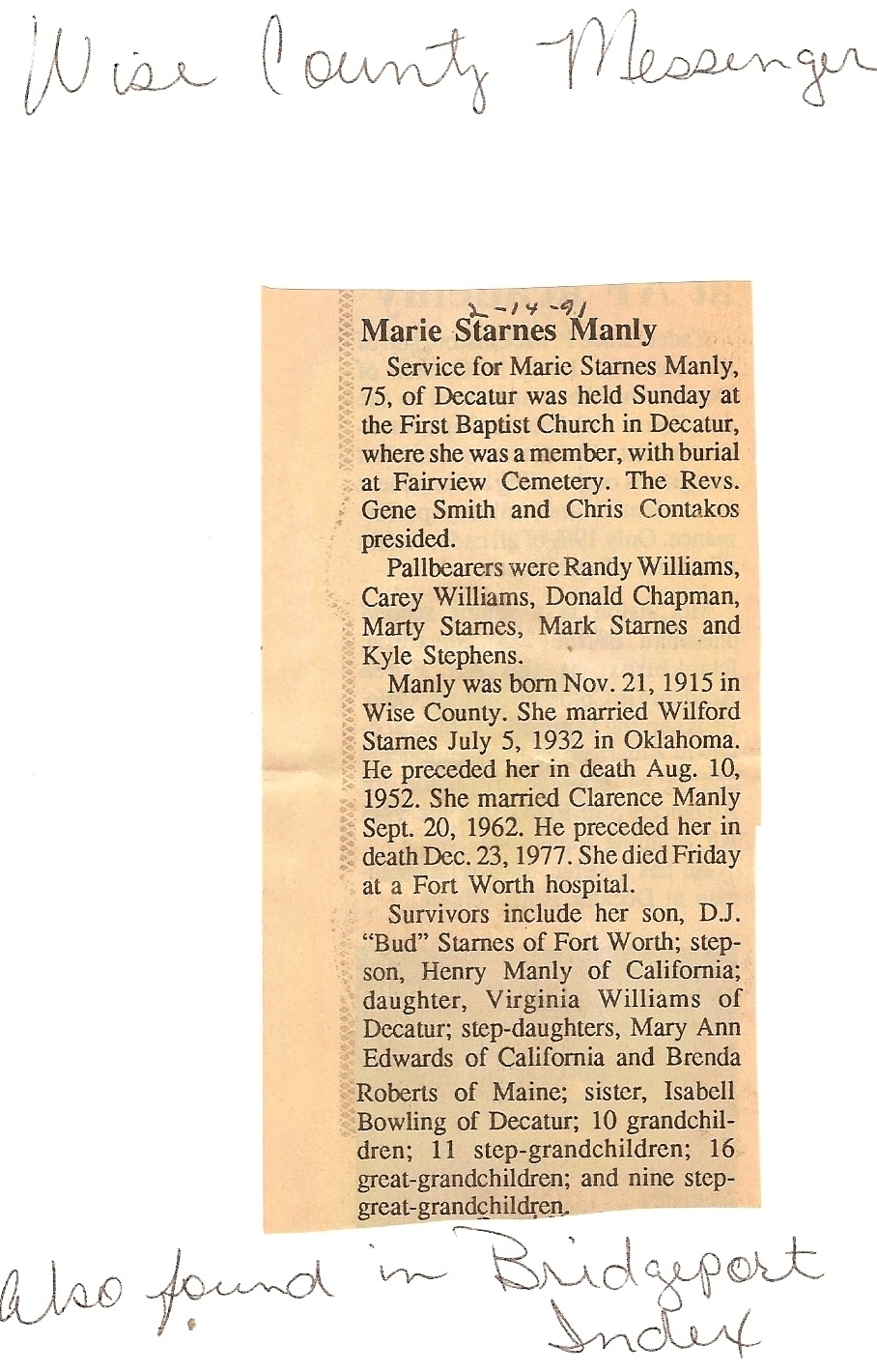 Most selected clippings are from 'The Bridgeport Index' and 'The Wise County Messenger',