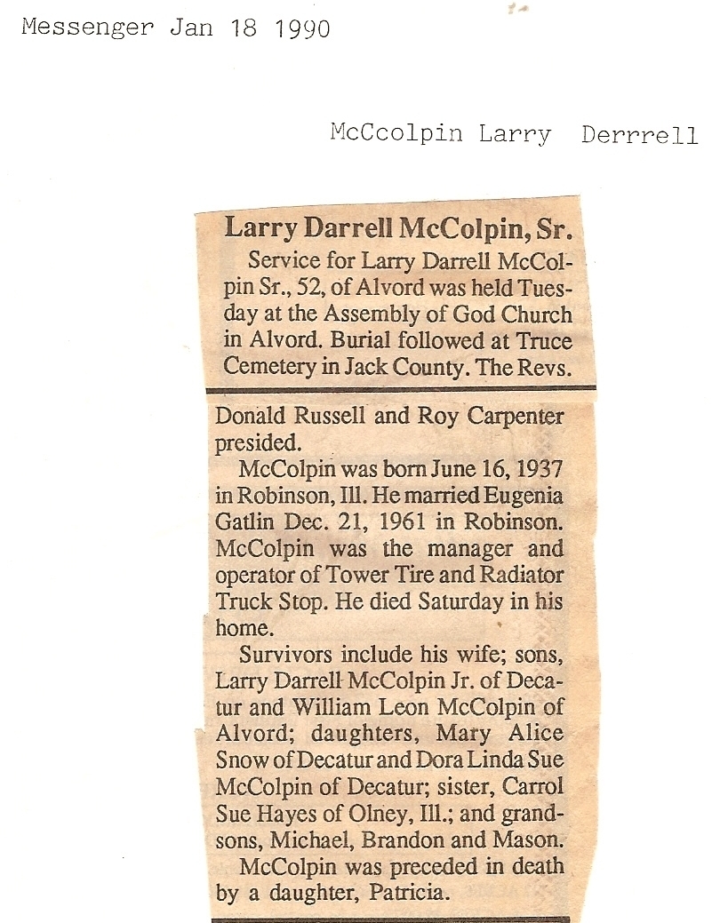 Laird, Robert Dalton 'Bobby' 1988 -- Newspaper Clipping