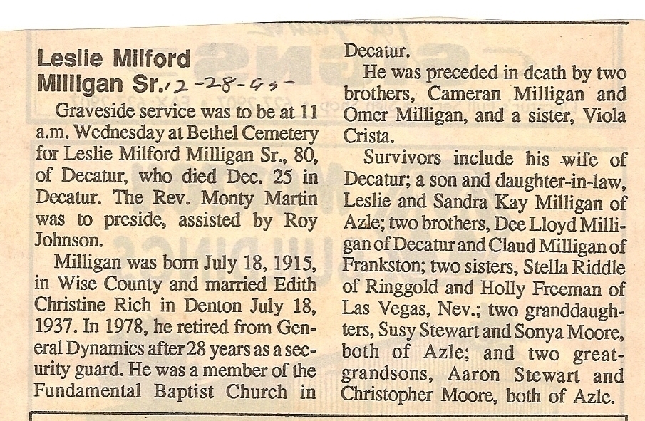 Myers, Jed Dare 'Shorty' - 1939 -- Various Older Newspapers