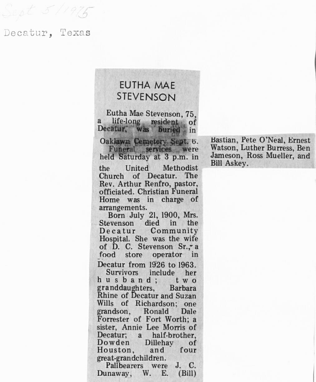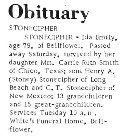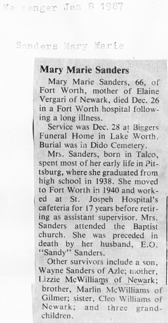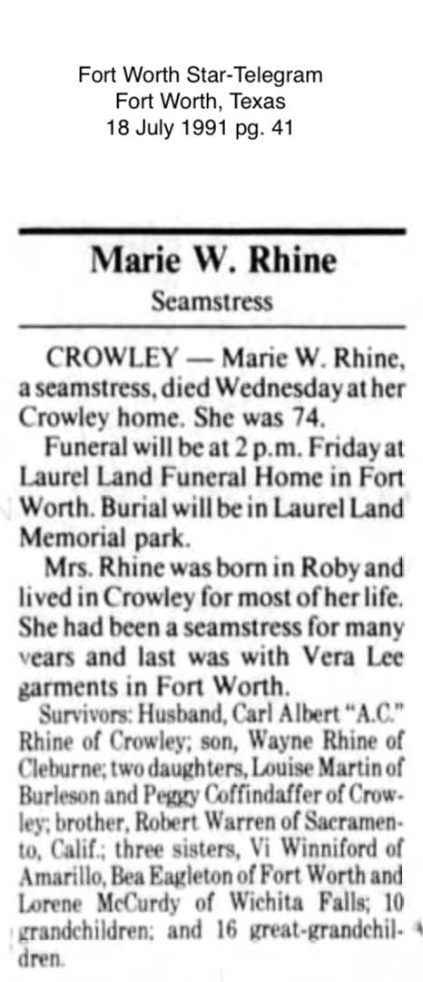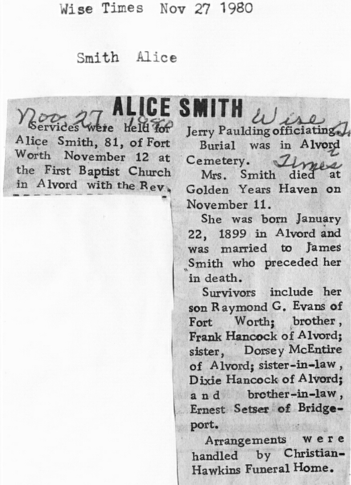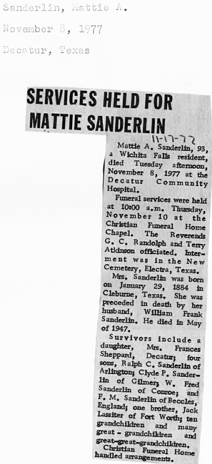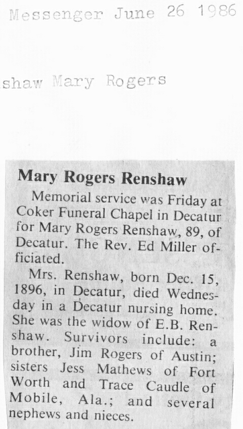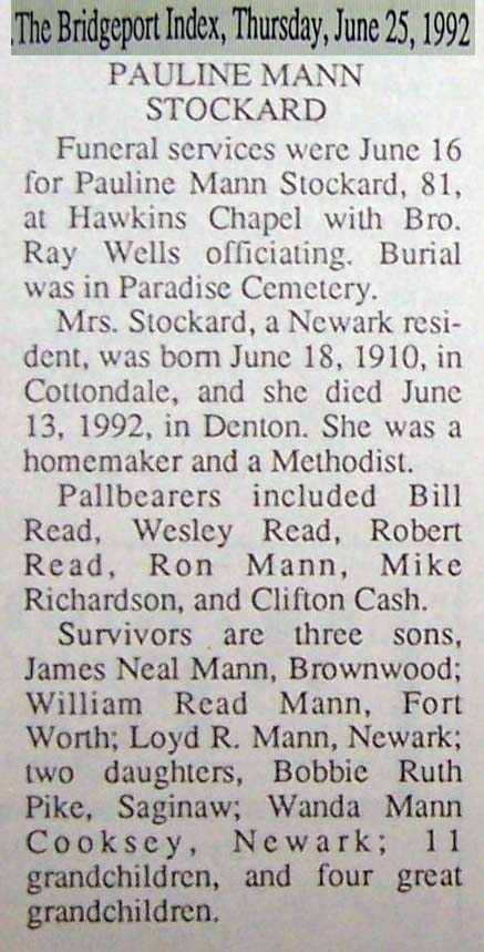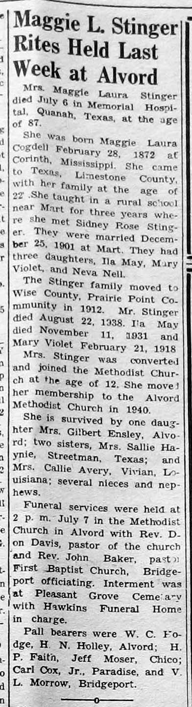 Swafford, Mary Alline - 1939 -- Various Older Newspapers