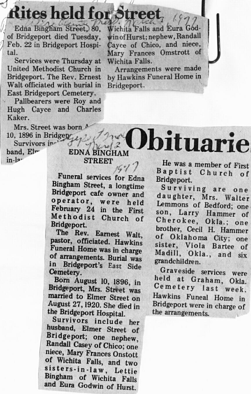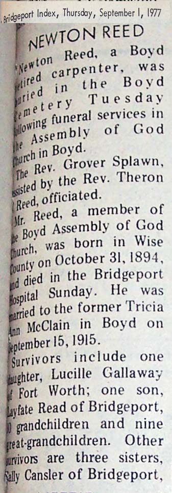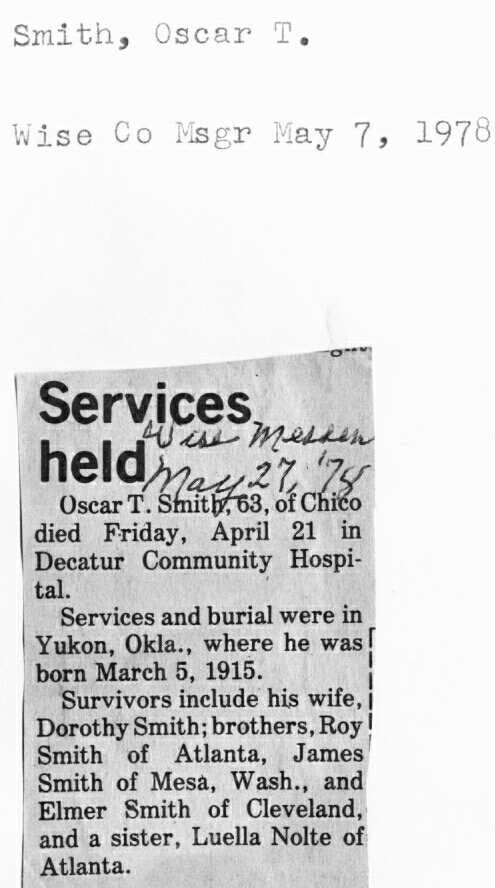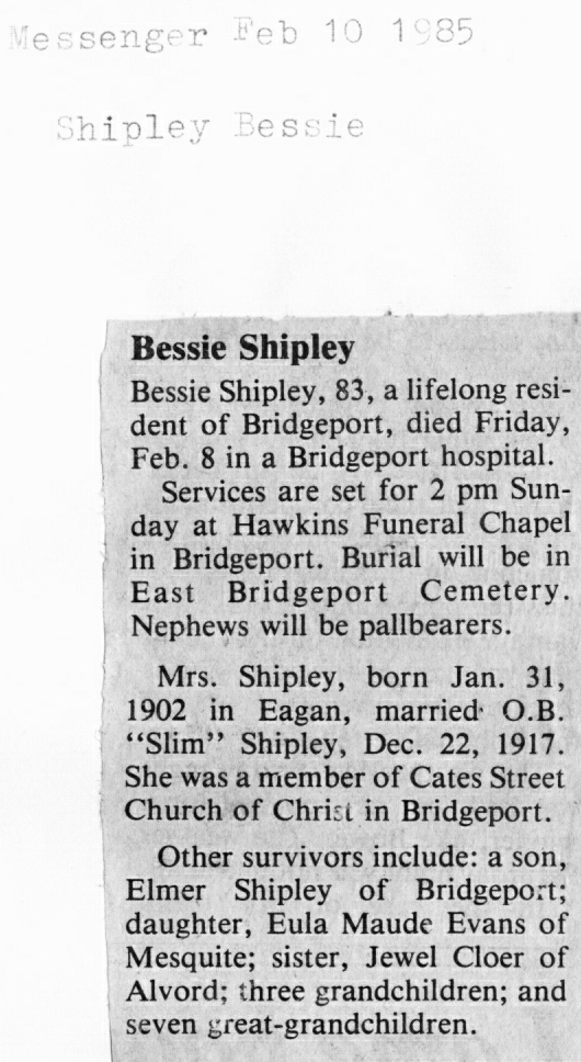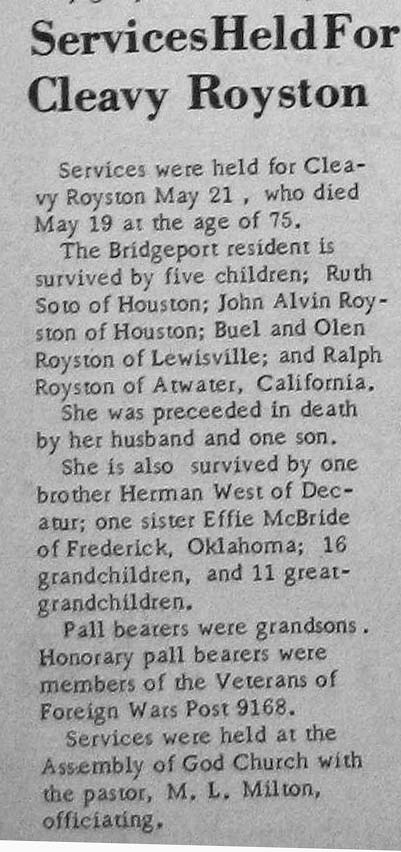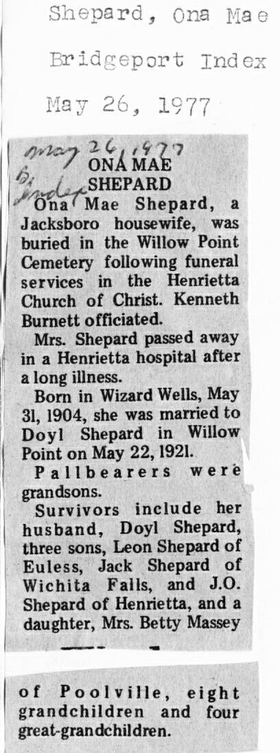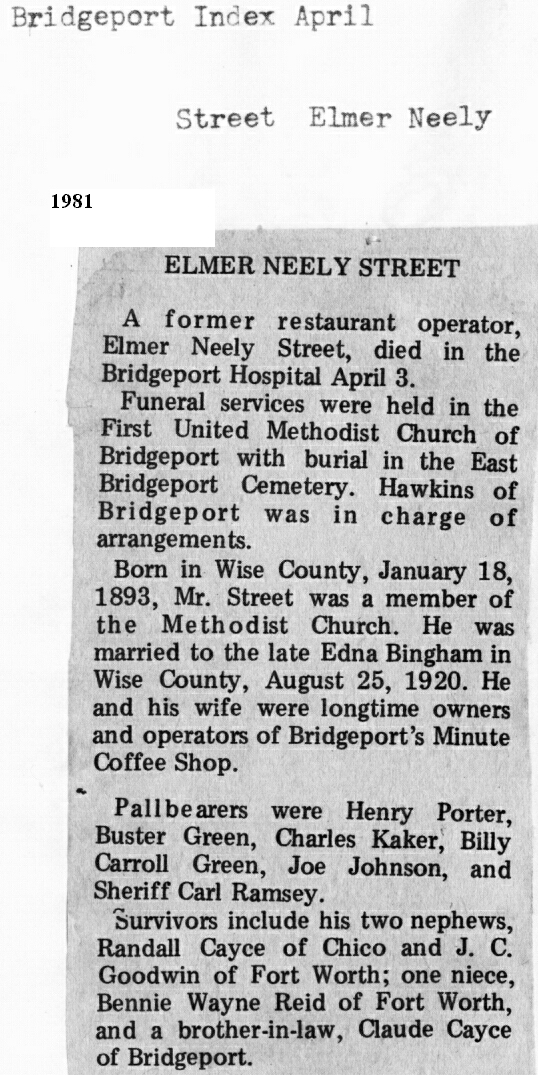 Most clippings are from 'The Bridgeport Index' and 'The Wise County Messenger',