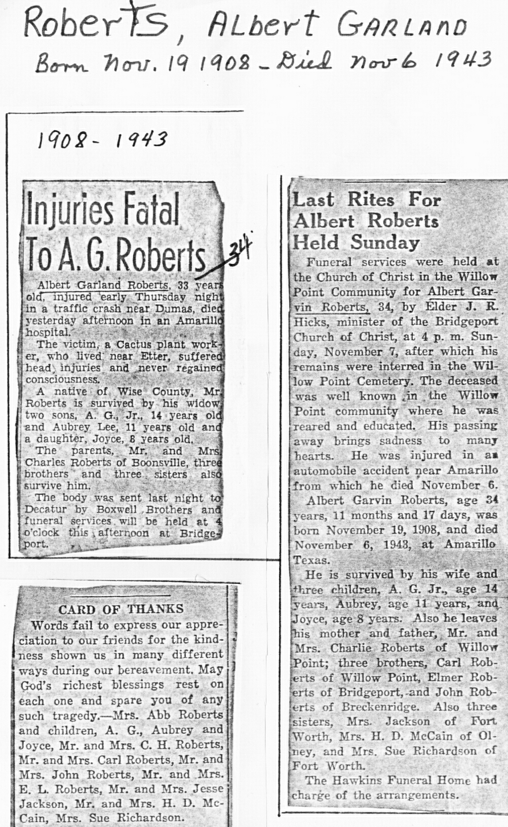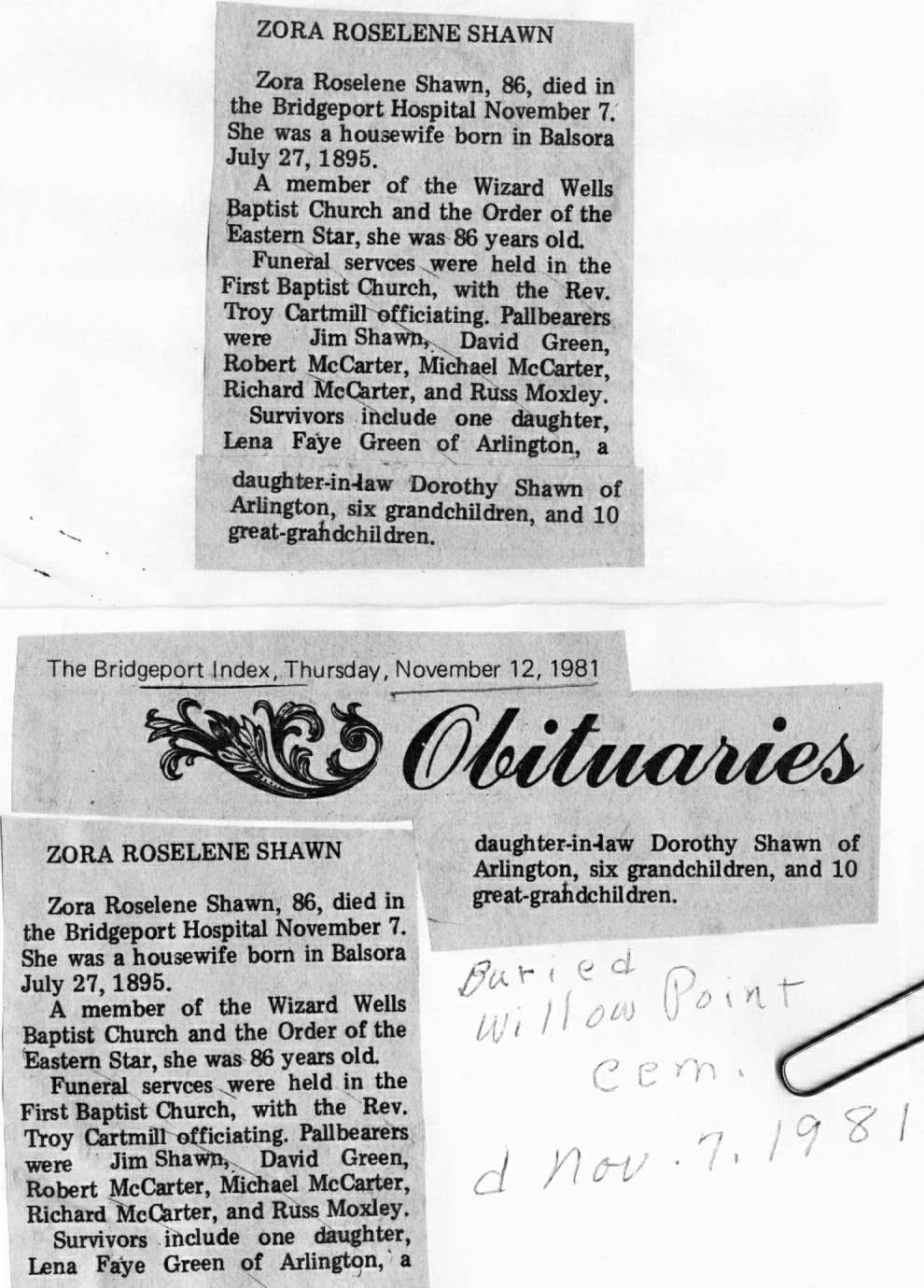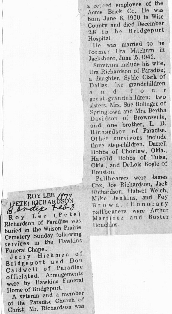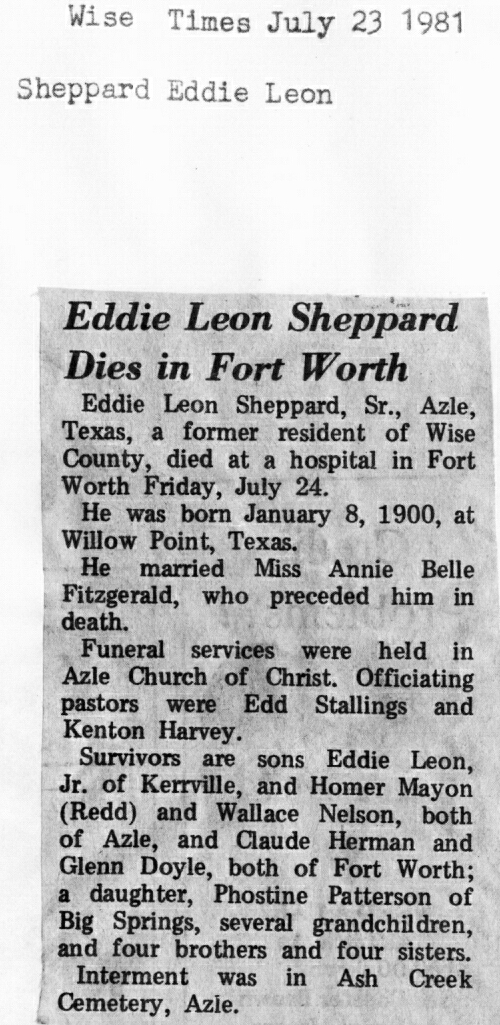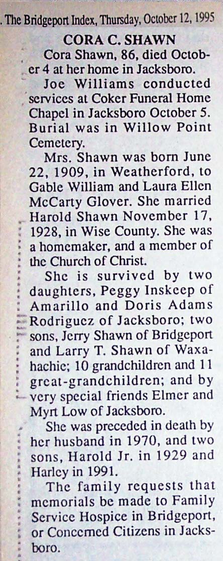 Most clippings are from 'The Bridgeport Index' and 'The Wise County Messenger',