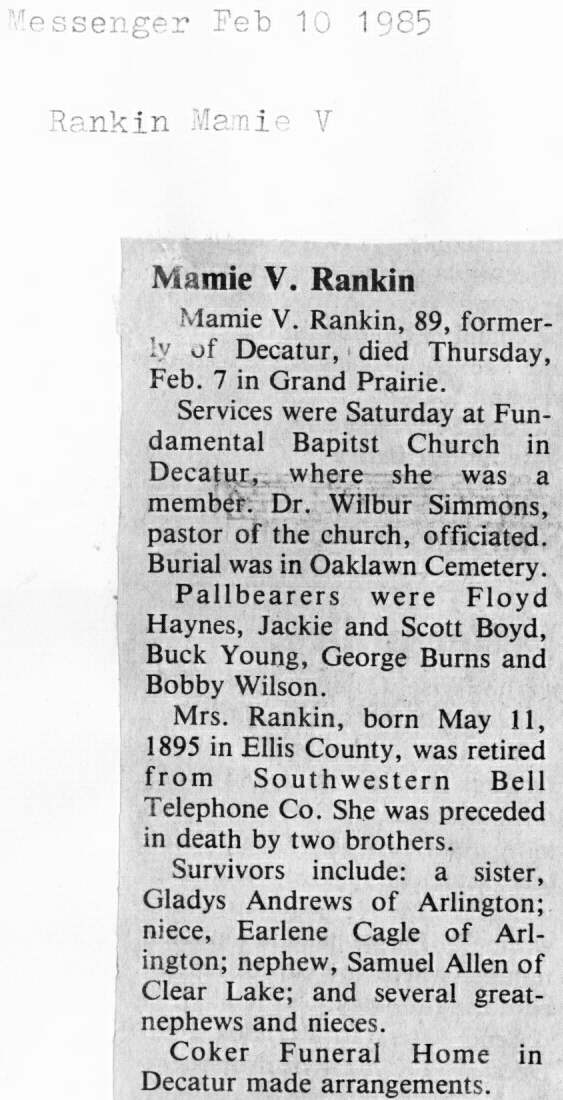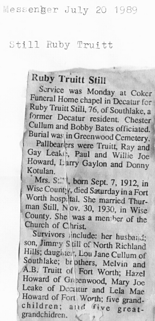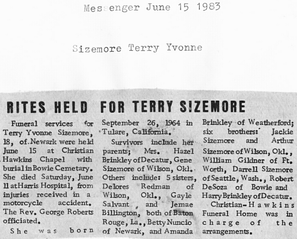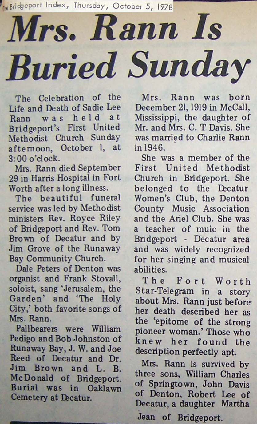 Ramsdale, Lena Mae 1986 -- Newspaper Clipping