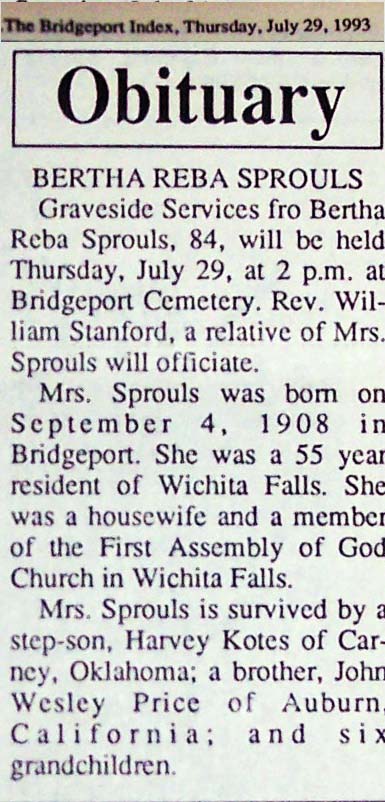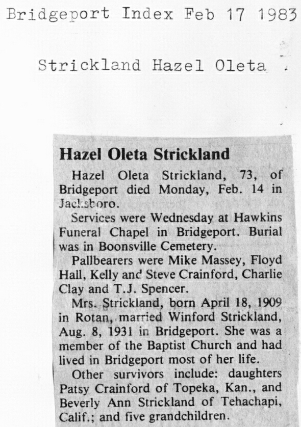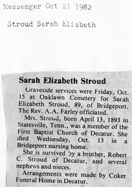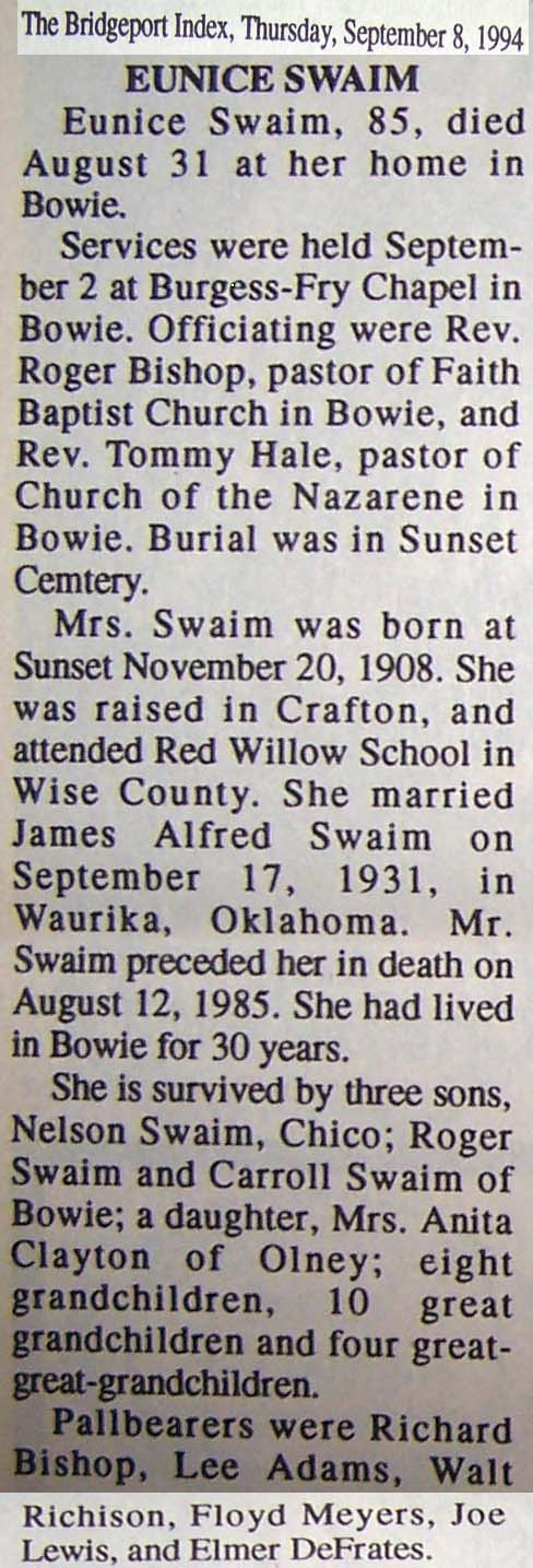 Swofford, Sarah Ann Taylor Swinney -- 1945 Bridgeport Index