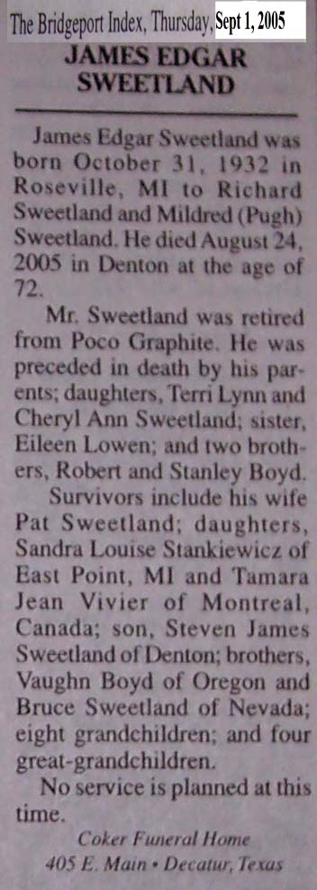 Sweetland, James Edgar 2005 -- 2005 Wise County Messenger (Sheet)