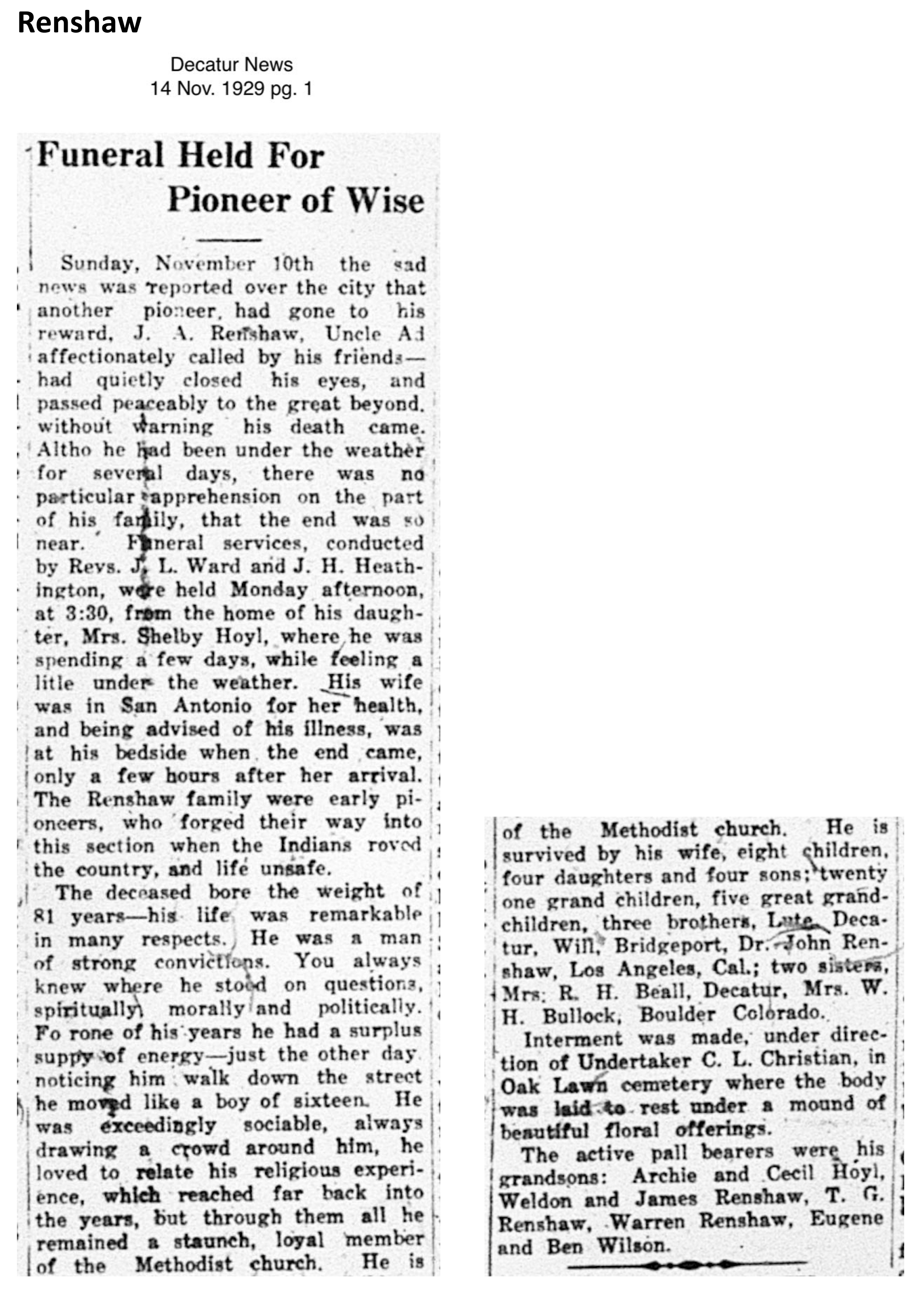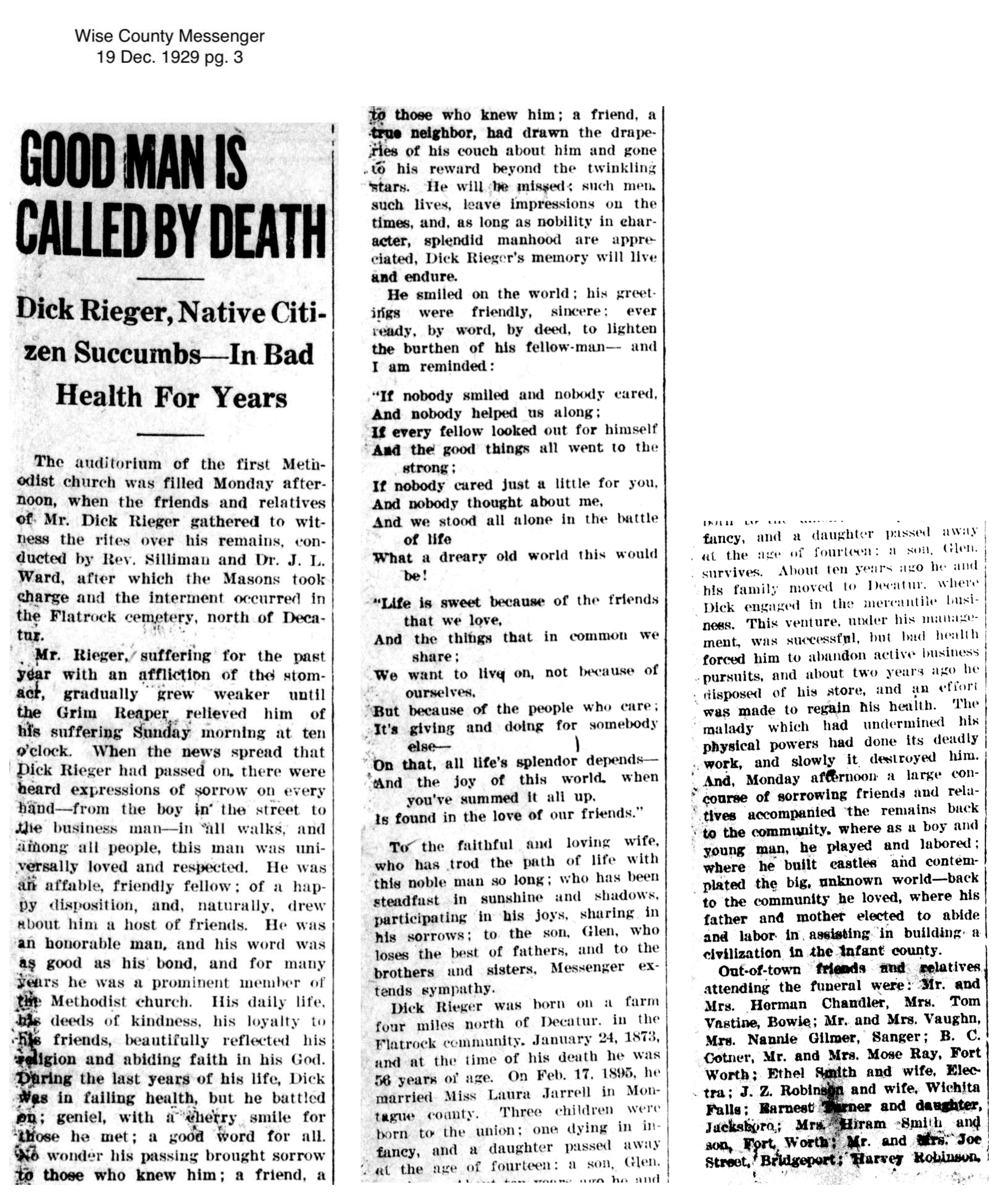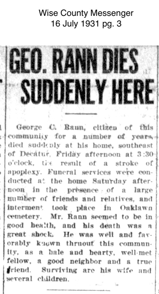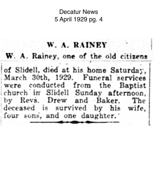 Rainey, W.A. - 1929 -- Old Decatur News & Wise Co Messenger