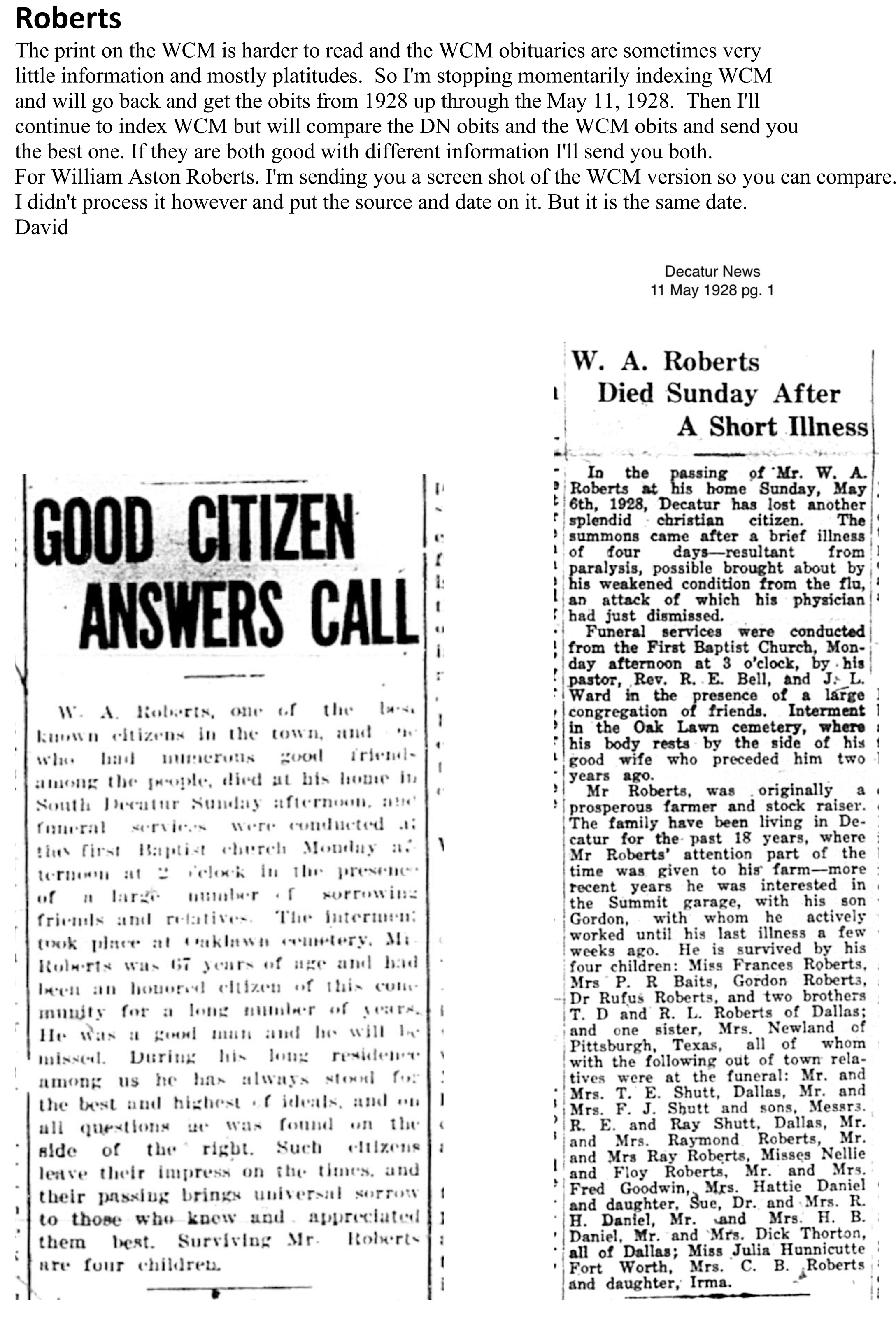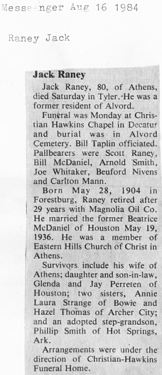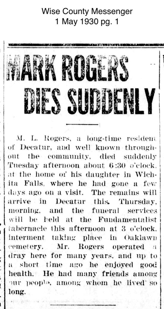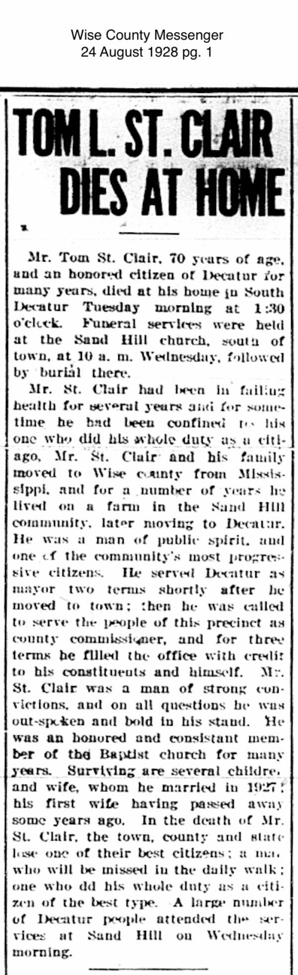 Rainey, W.A. - 1929 -- Old Decatur News & Wise Co Messenger