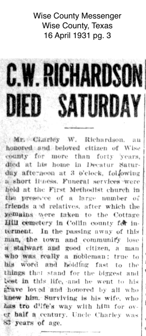 Sweeton, John M., Dr.2- 1930 -- Old Decatur News & Wise Co Messenger