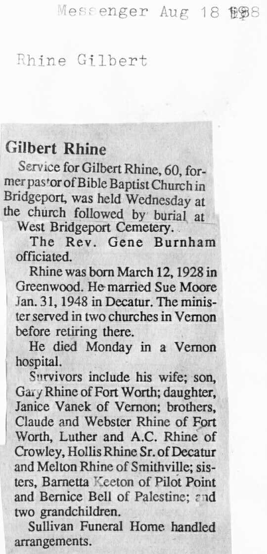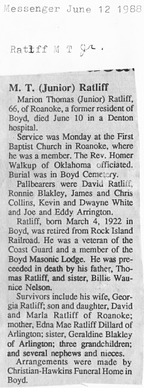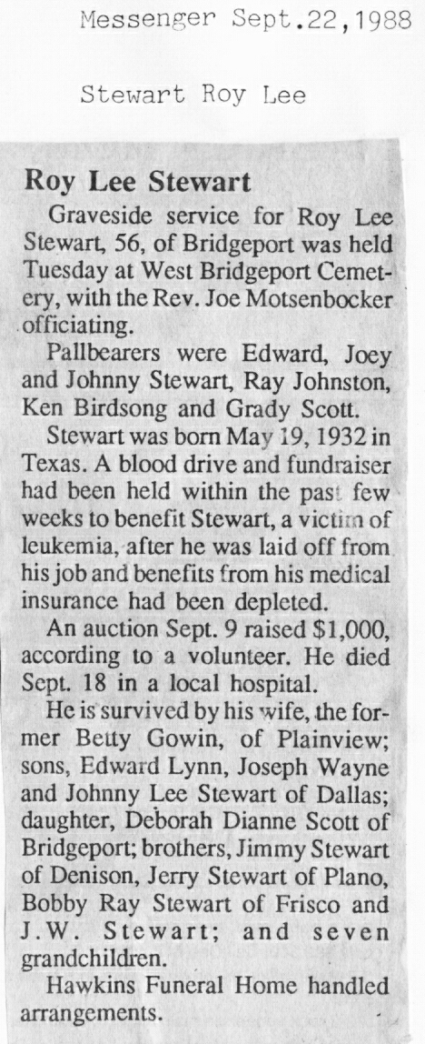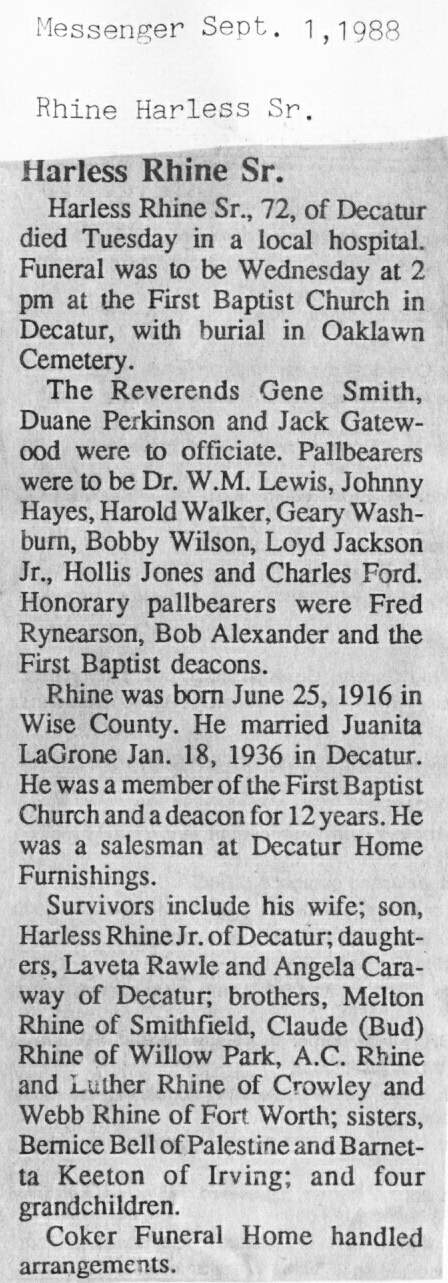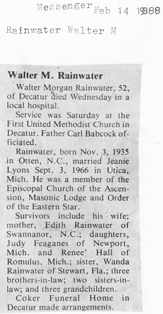 Rainwater, Walter Morgan 1988 -- Newspaper Clipping