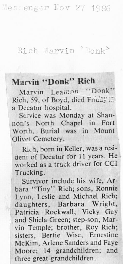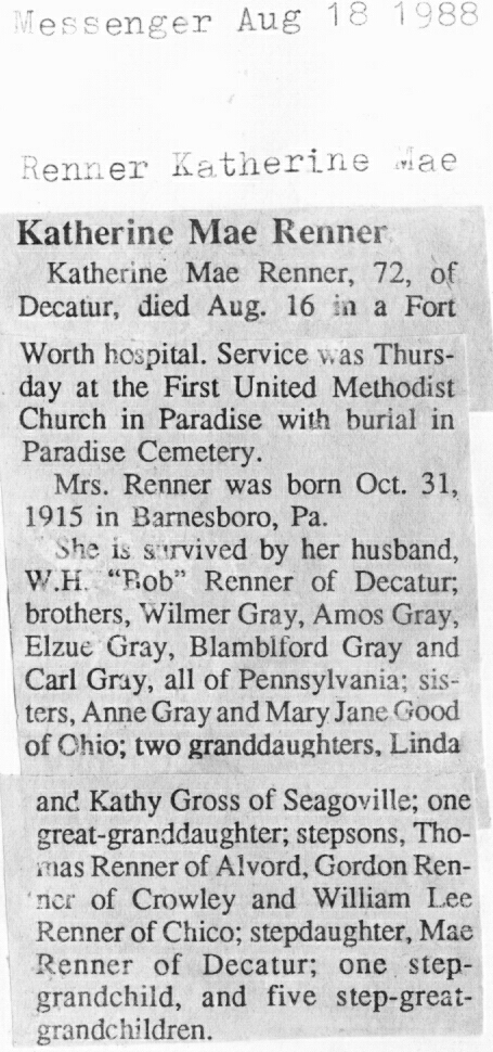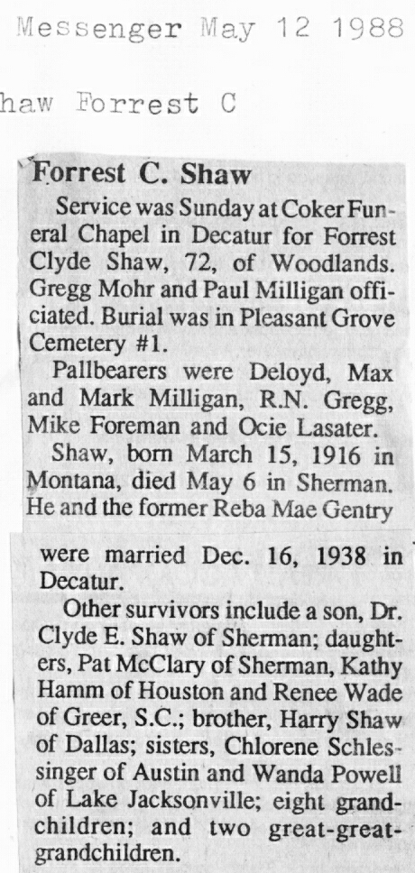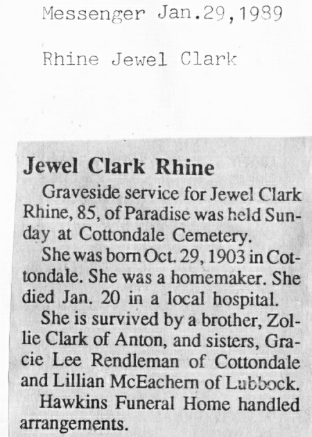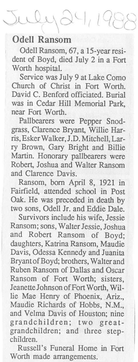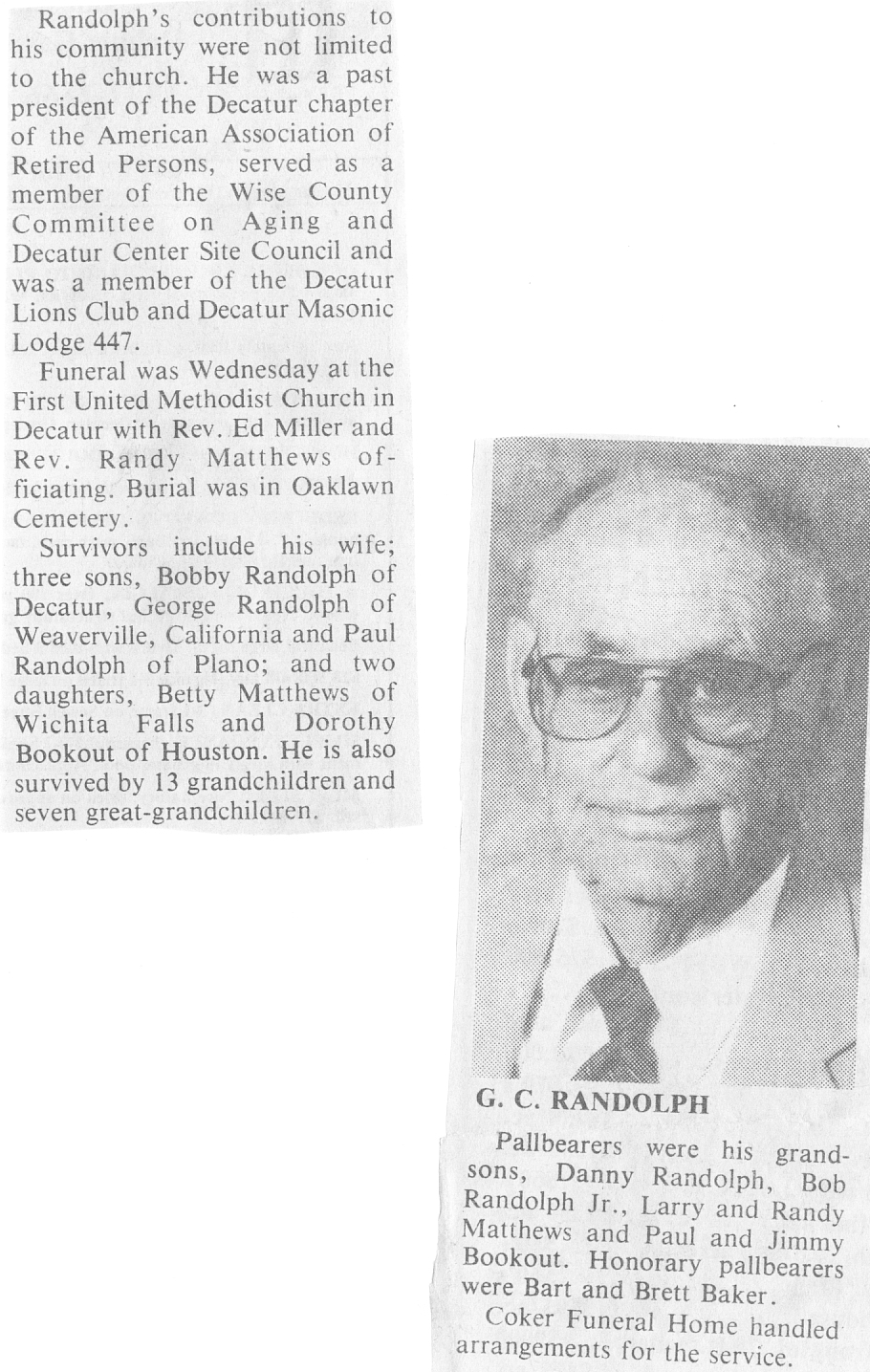 Rainwater, Walter Morgan 1988 -- Newspaper Clipping