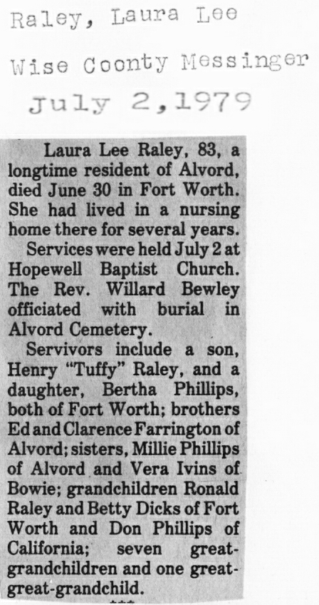 Raley, Laura Lee 1979 -- Newspaper Clipping
