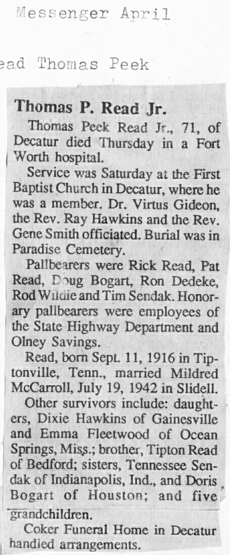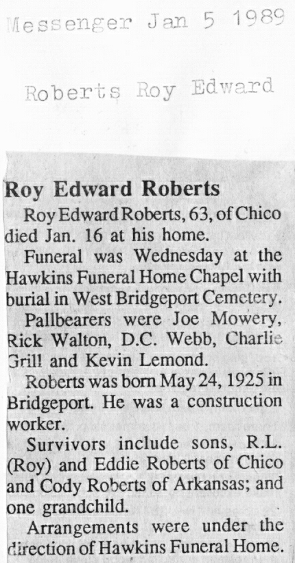 Raley, Henry H. (Tuffy) 1989 -- Newspaper Clipping