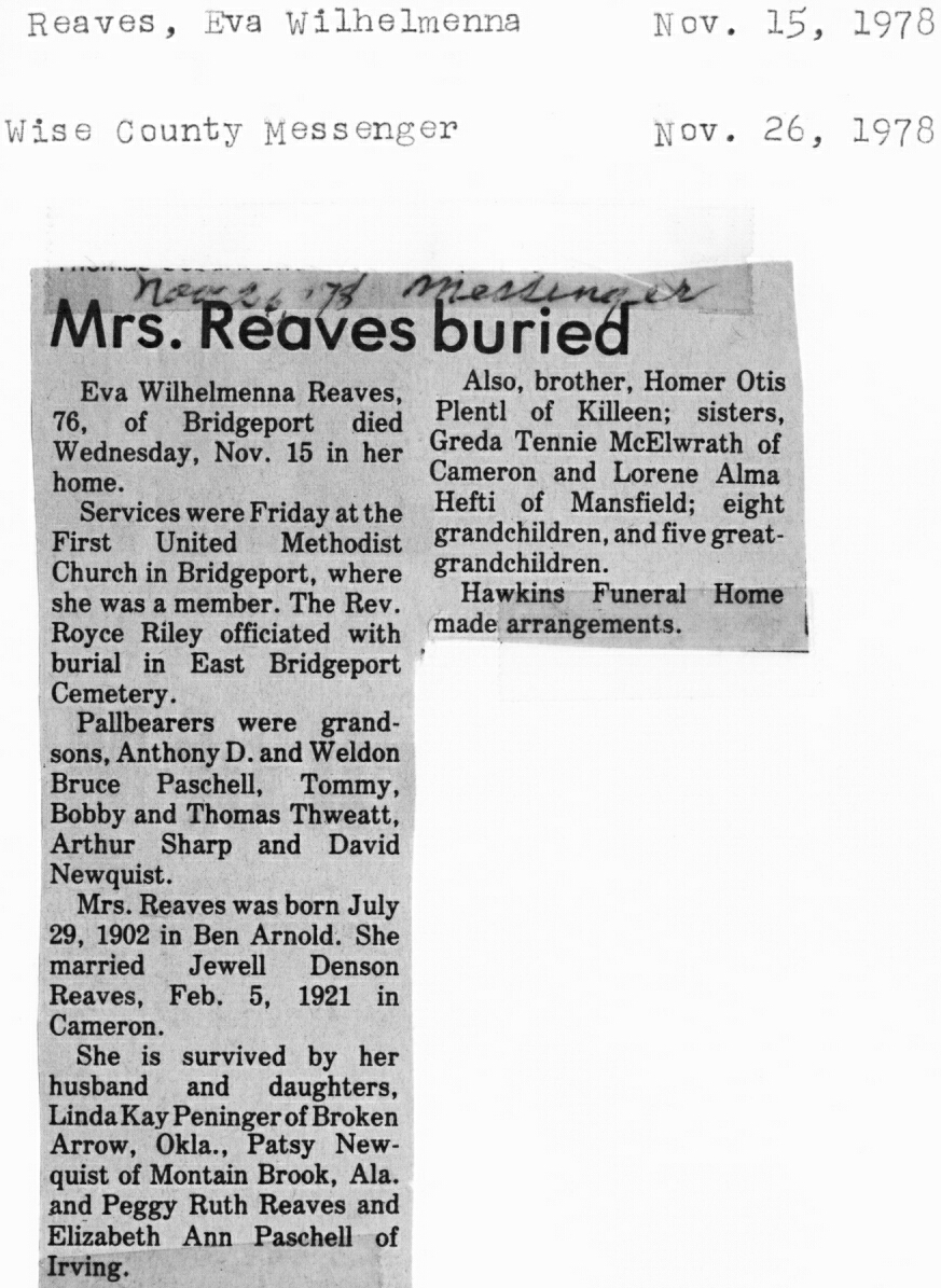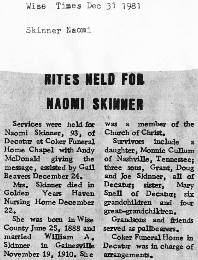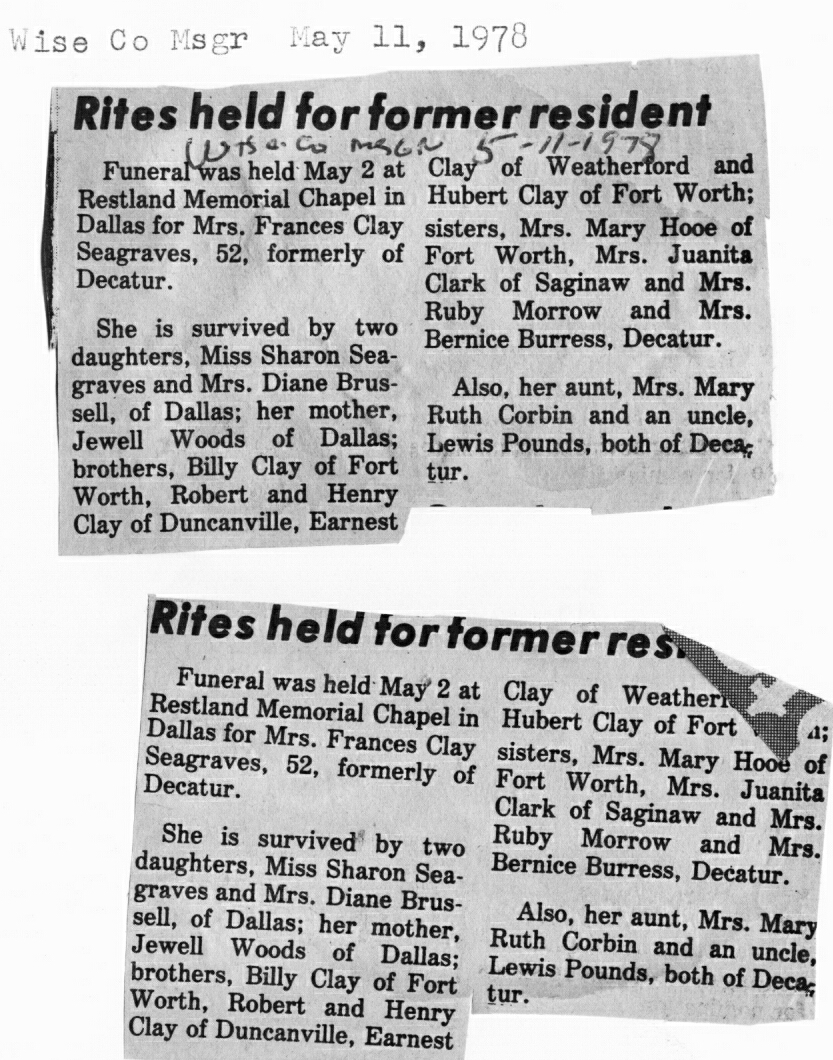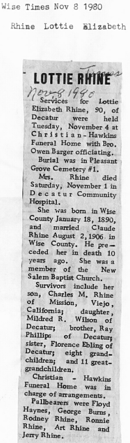 Swinney, Velma 2006 -- 2006 Wise County Messenger (Sheet)