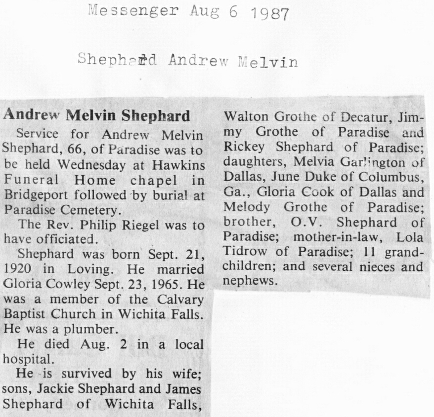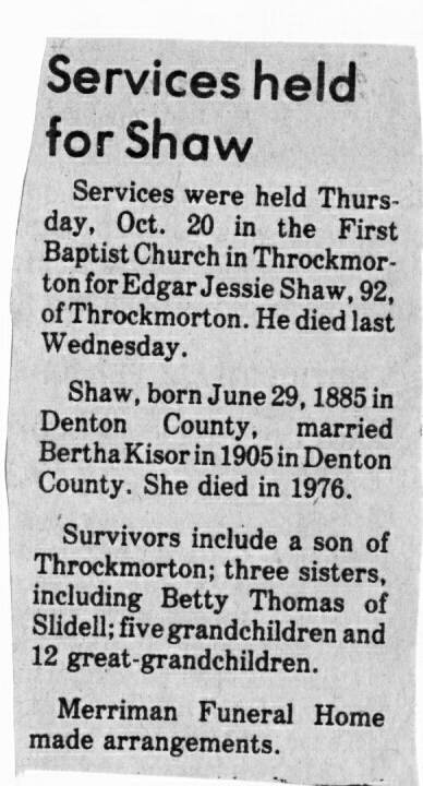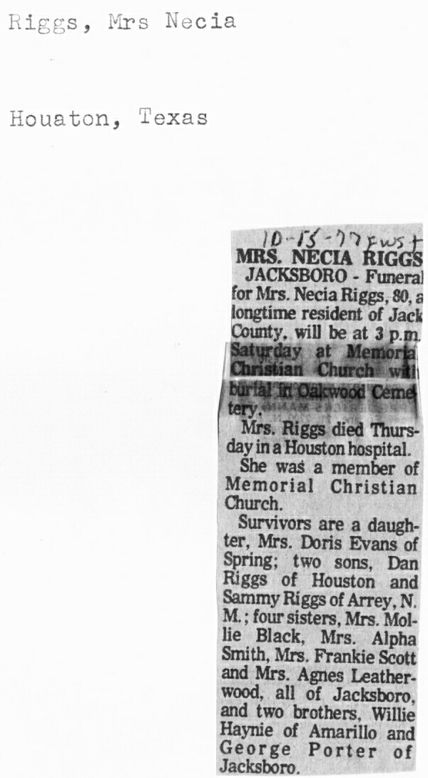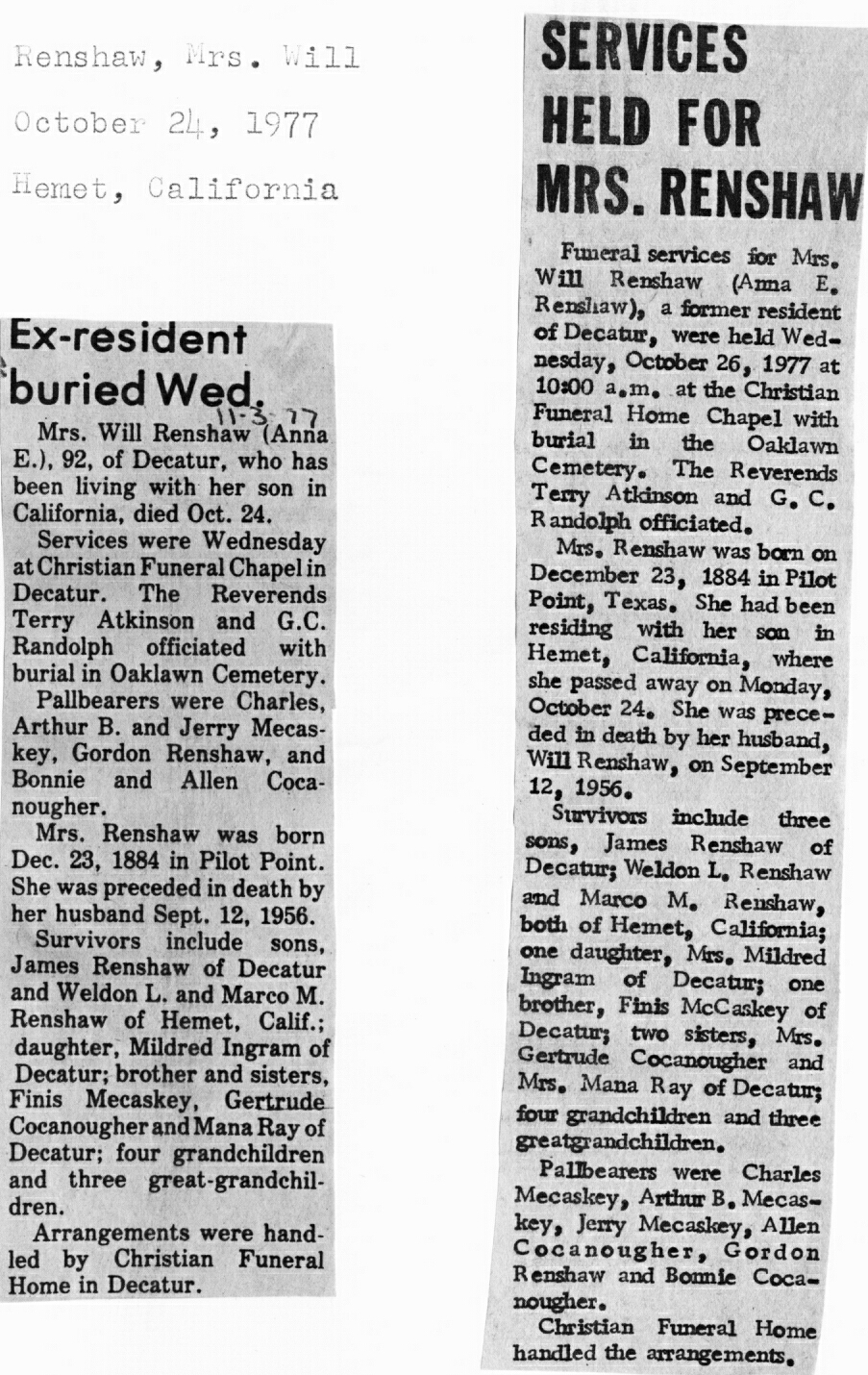 Ragan, Clemon Shields 1977 -- Newspaper Clipping