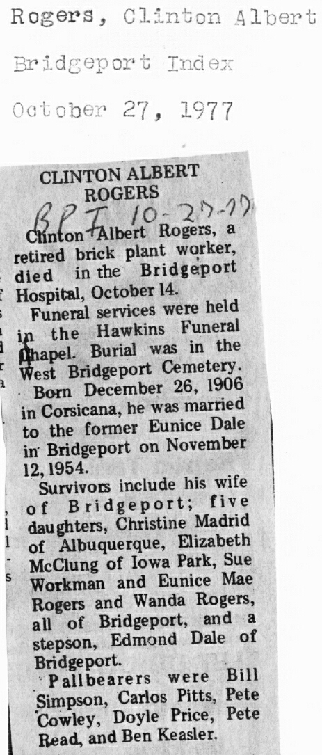 Ragan, Clemon S. 1977 -- Bridgeport Index