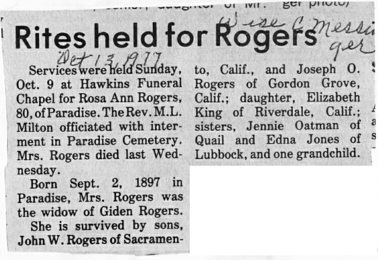 Ramage, Joyce LaWayne (Roberts) 2016 -- 2016 Wise County Messenger