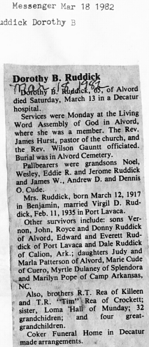 Rainwater, Vada ‘Ruth’ (Woods) - 2021 -- 2021 Hawkins Funeral Homes