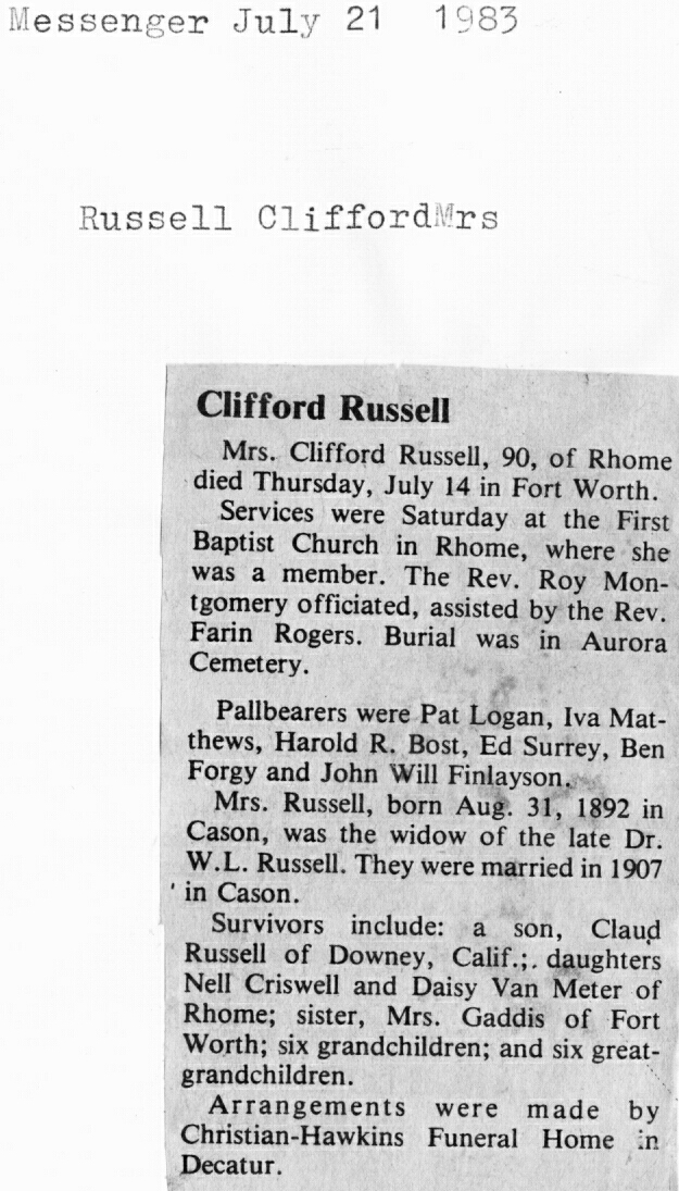 Raley, Mabeth Robertson 2007 -- 2007 Wise County Messenger (Sheet)