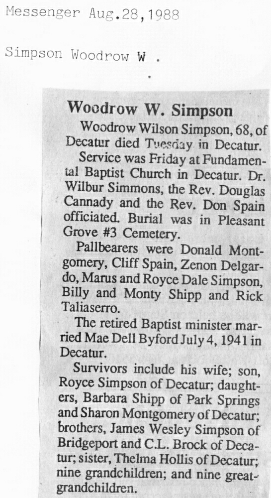 Swaringen, Woodrow Wilson 1989 -- Newspaper Clipping