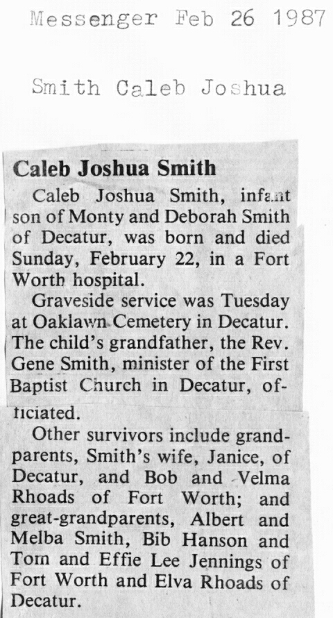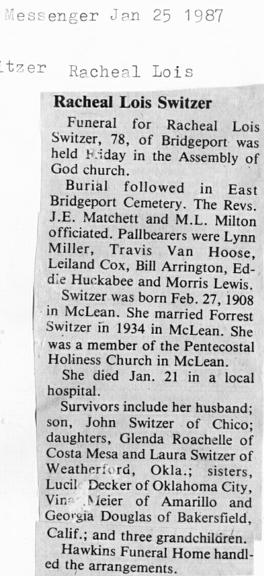 Switzer, Racheal Lois 1987 -- Newspaper Clipping