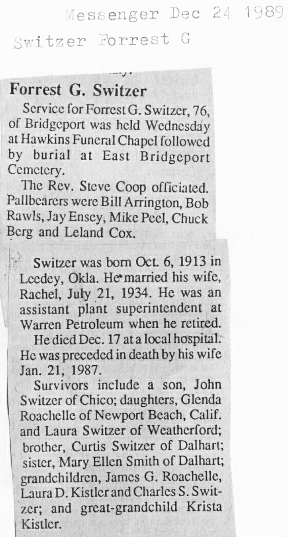 Switzer, Forrest G. 1989 -- Newspaper Clipping
